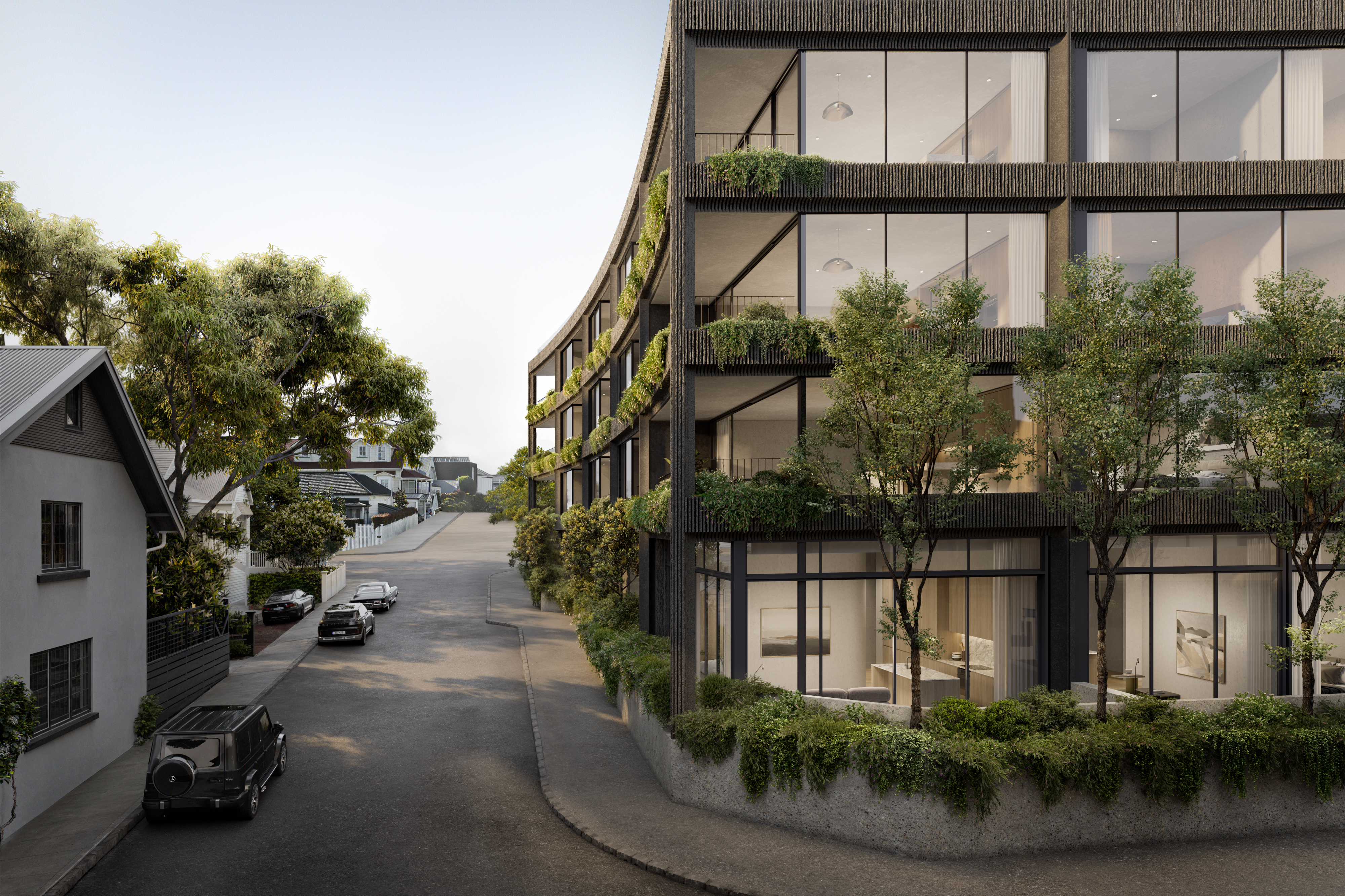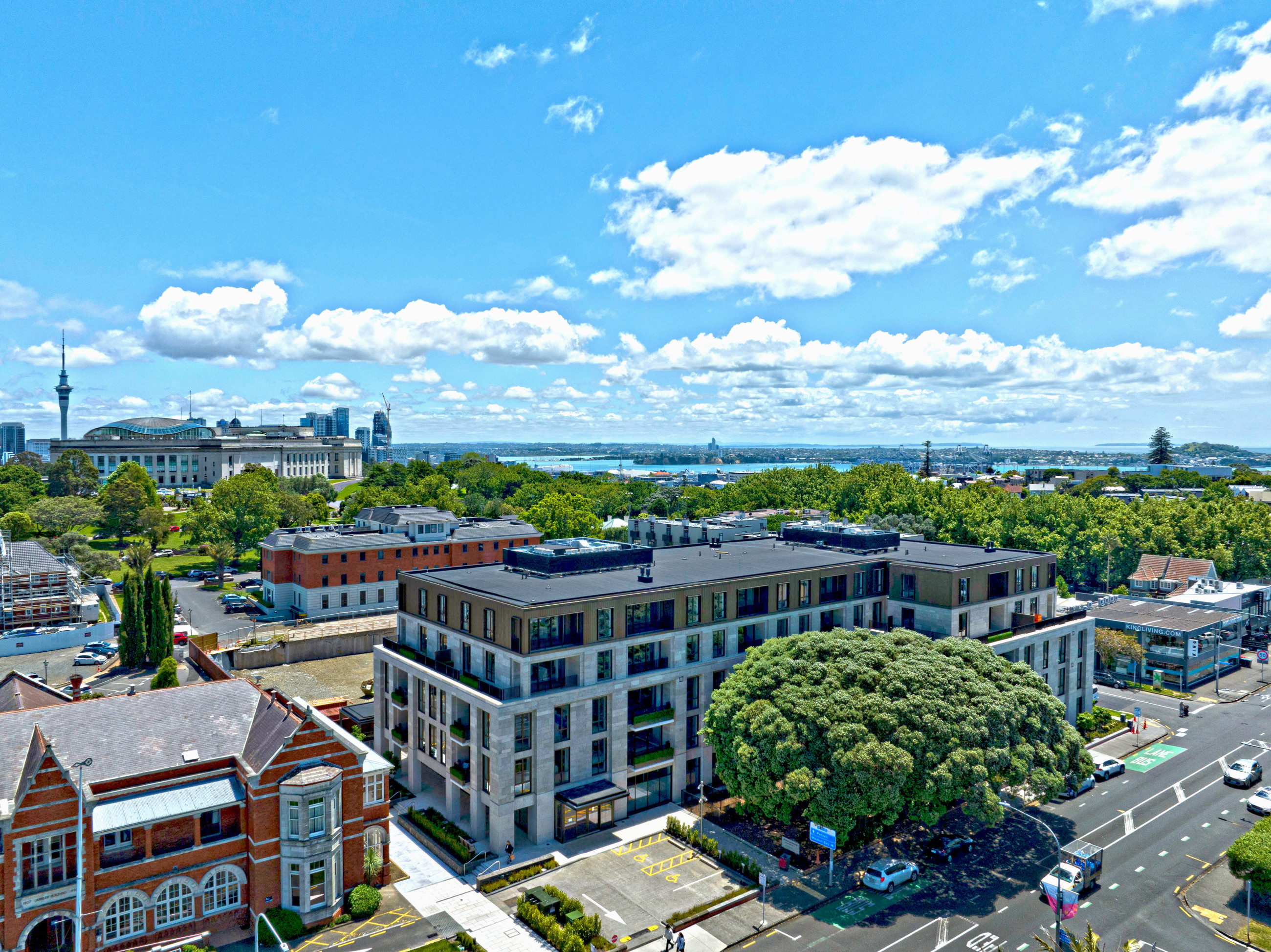 Commanding the three street fronts of York, Bradford, and Earle Streets, the upper levels capture views north-east to Rangitoto Island and Waitematā Harbour, the CBD to the north-west, and Auckland Domain to the south-west. Each home on the lower levels takes full advantage of the streetscape character.